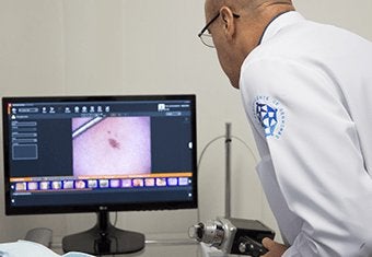 • A dermatoscopia digital ou mapeamento corporal permite uma análise mais precisa e organizada das lesões pigmentadas (pintas), comparando eventuais modificações da mesma, ou mesmo a presença de novas lesões.